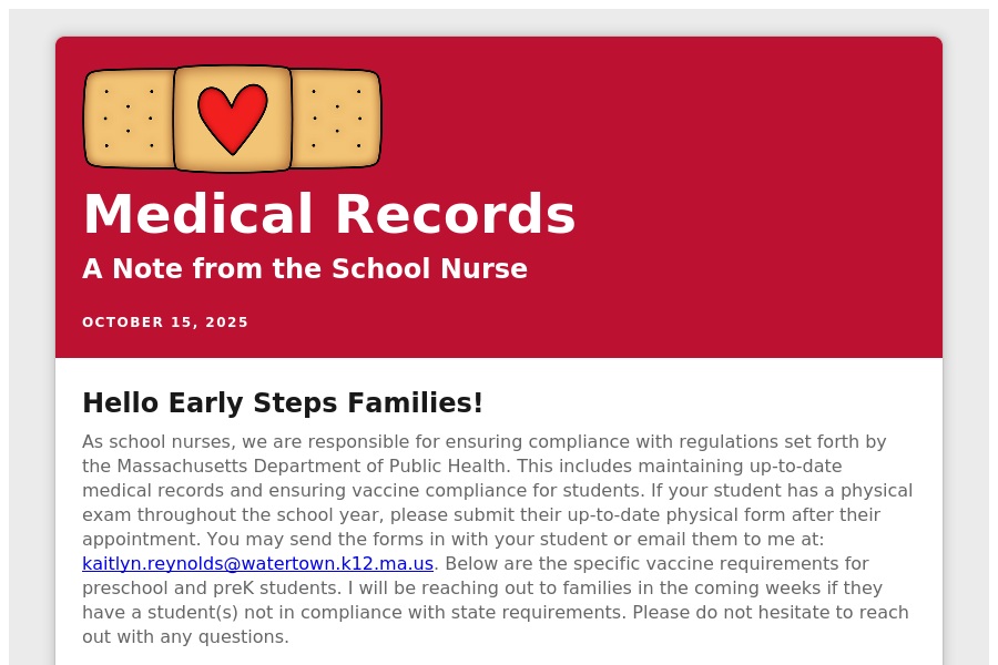 Early Steps Registration Information for the 2025 - 2026 School Year is available on the Early Steps registration page.